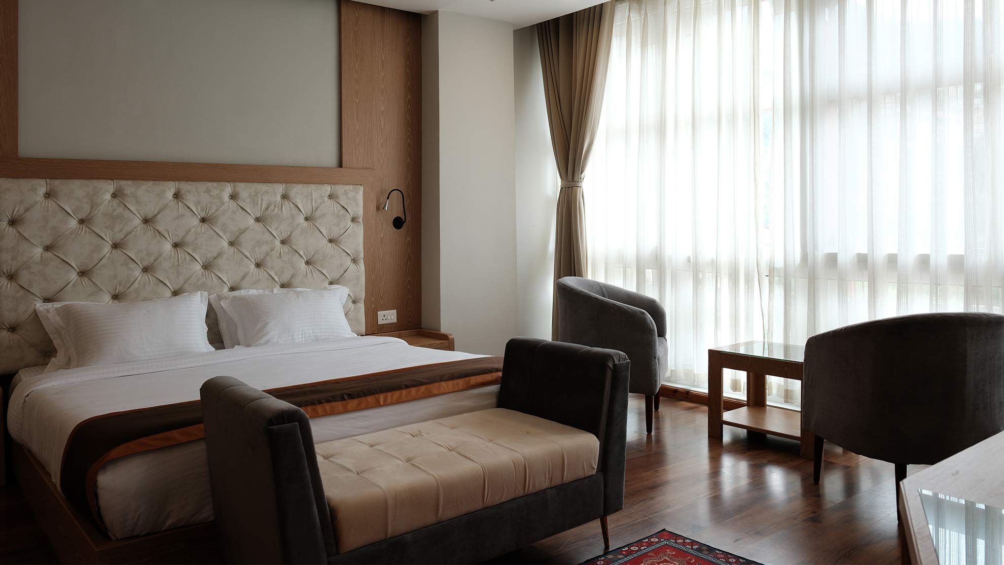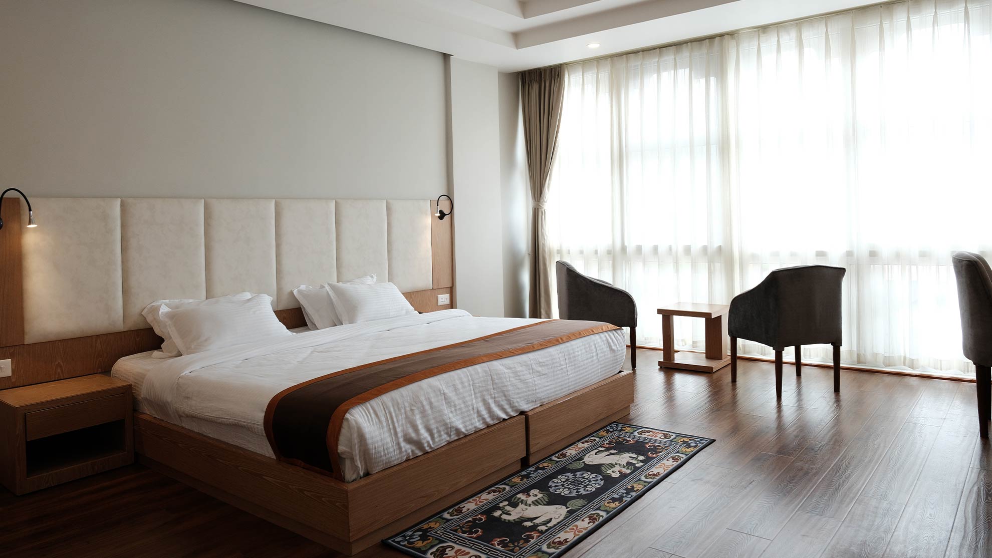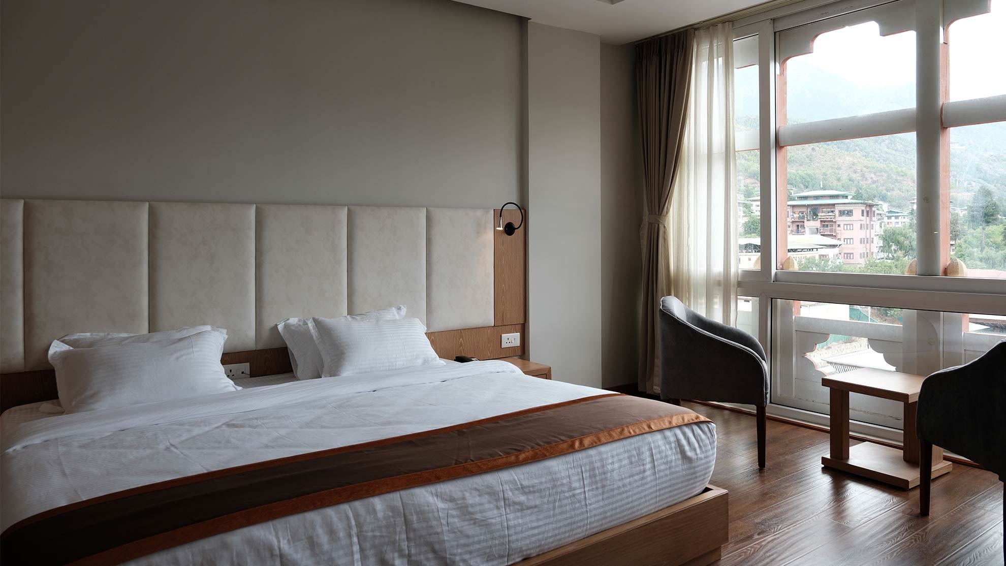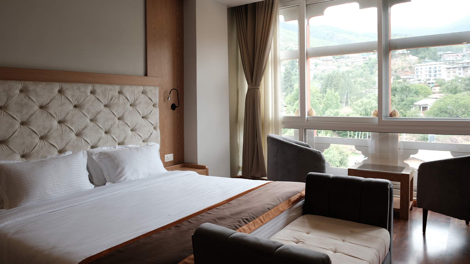 Relax in elegance with stunning Thimphu valley views, featuring a king-size or twin beds for single or double occupancy.